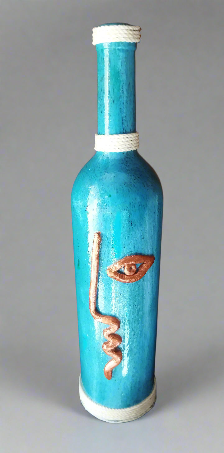 Χειροποίητα διακοσμητικά μπουκάλια, ζωγραφισμένα στο χέρι, με καλλιτεχνικές μορφές προσώπων. Κάθε κομμάτι φιλοτεχνείται προσεκτικά πάνω σε επιλεγμένα γυάλινα μπουκάλια, μετατρέποντάς τα σε μικρά έργα τέχνης. Ιδανικά για το σαλόνι, την τραπεζαρία ή ακόμα και για επαγγελματικούς χώρους, προσφέρουν κομψότητα και εντυπωσιάζουν τους επισκέπτες σας με τη μοναδική αισθητική τους.